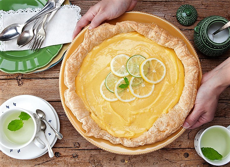 TARTE FOLHADA DE CREME DE LIMÃO E LIMA