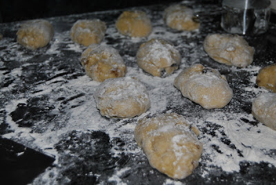 À mão, coloca-se a farinha e o açúcar numa tigela grande e faz-se uma cova no meio. Dissolve-se o fermento no leite morno e coloca-se no meio da farinha, mexe-se um pouco. Adicionam-se os restante ingredientes e amassa-se tudo muito bem durante alguns minutos, formando uma bola homogénea. Deixa-se levedar tapado com um pano e seguem-se as mesmas indicações depois de retirar da MFP.